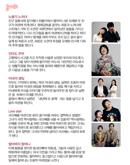여섯 명의 배우가 서로 돌아가면서 짝을 이루고 공연을 하는데 아이들 때문이었는지는 몰라도 개인적으로 그리 재미나 감동을 느끼지는 못했다.