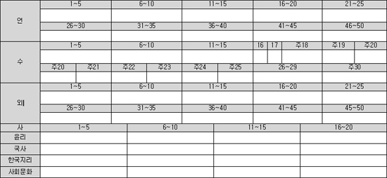 수능시험 가채점용 표