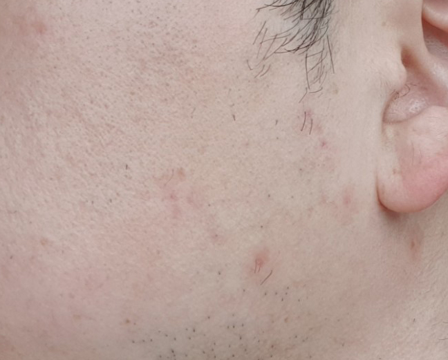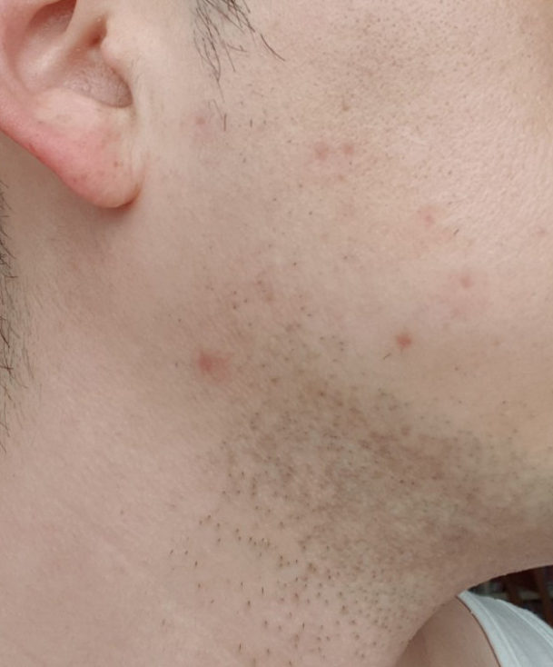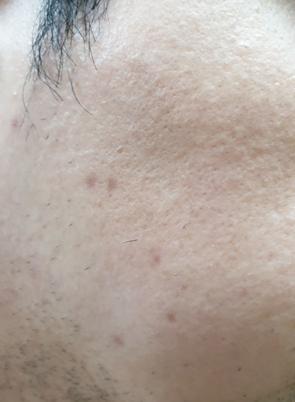 하안검 때문에 면도를 제대로 못 해서... 사진이 좀 더럽지만, 아래 사진 두 장은 18일째 되던 날이다. 얼굴에 울긋불긋 한 자국들이 모두 점을 뺀 자리다.
