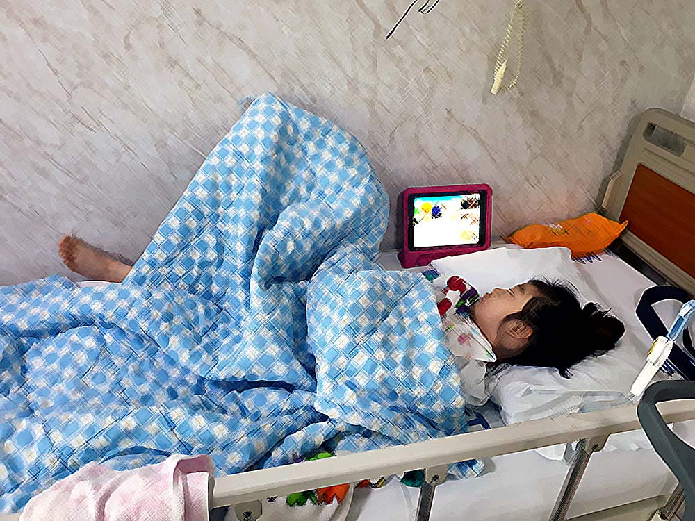 우리 아이는 정말 아무렇지도 않은 듯 병원에 잘 있다. 두려움이라고는 1도 보이지 않아 걱정을 많이 덜었다. 자기가 무엇을 하는지 모르는 것일까?